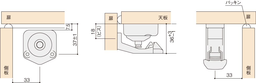 | 本体・受 | POM | アイボリー | グレー | 500セット | 本体: Aトラス3.5×25 受: Aトラス3.5×16 |