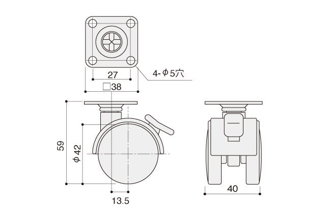 Φ40双輪キャスター(プレートタイプ)(TSK-42P)